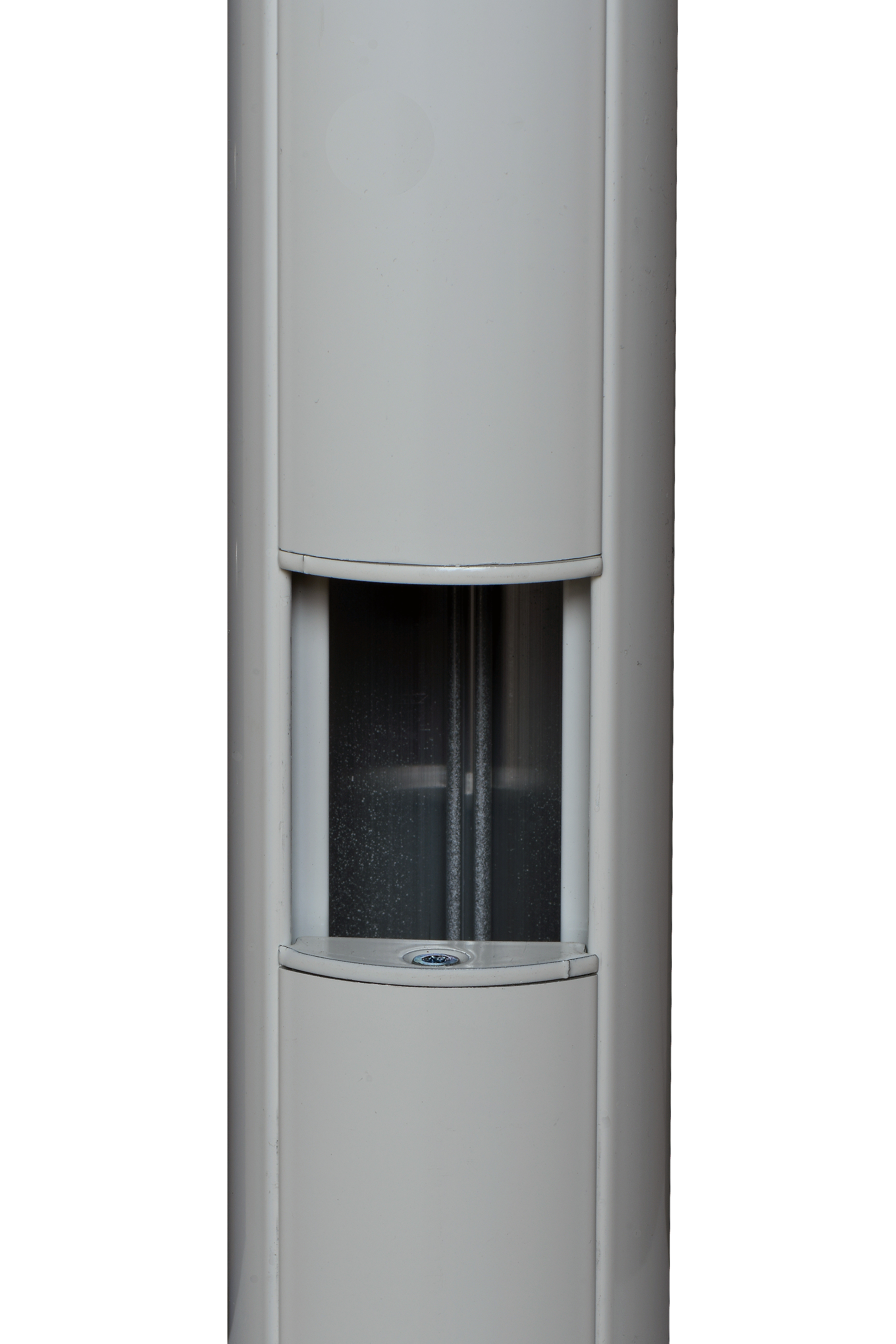 Den tunga foten har 2 hål, ett centrerat och ett ute vid kanten som gör det möjligt att placera staven nära vägg och möbler.