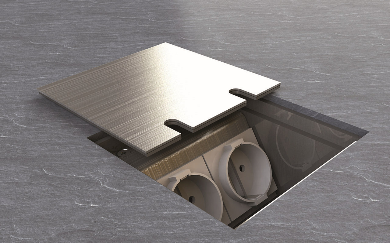 Golvbox 8802E är tillverkad i aluminium och har plats för 2 uttag