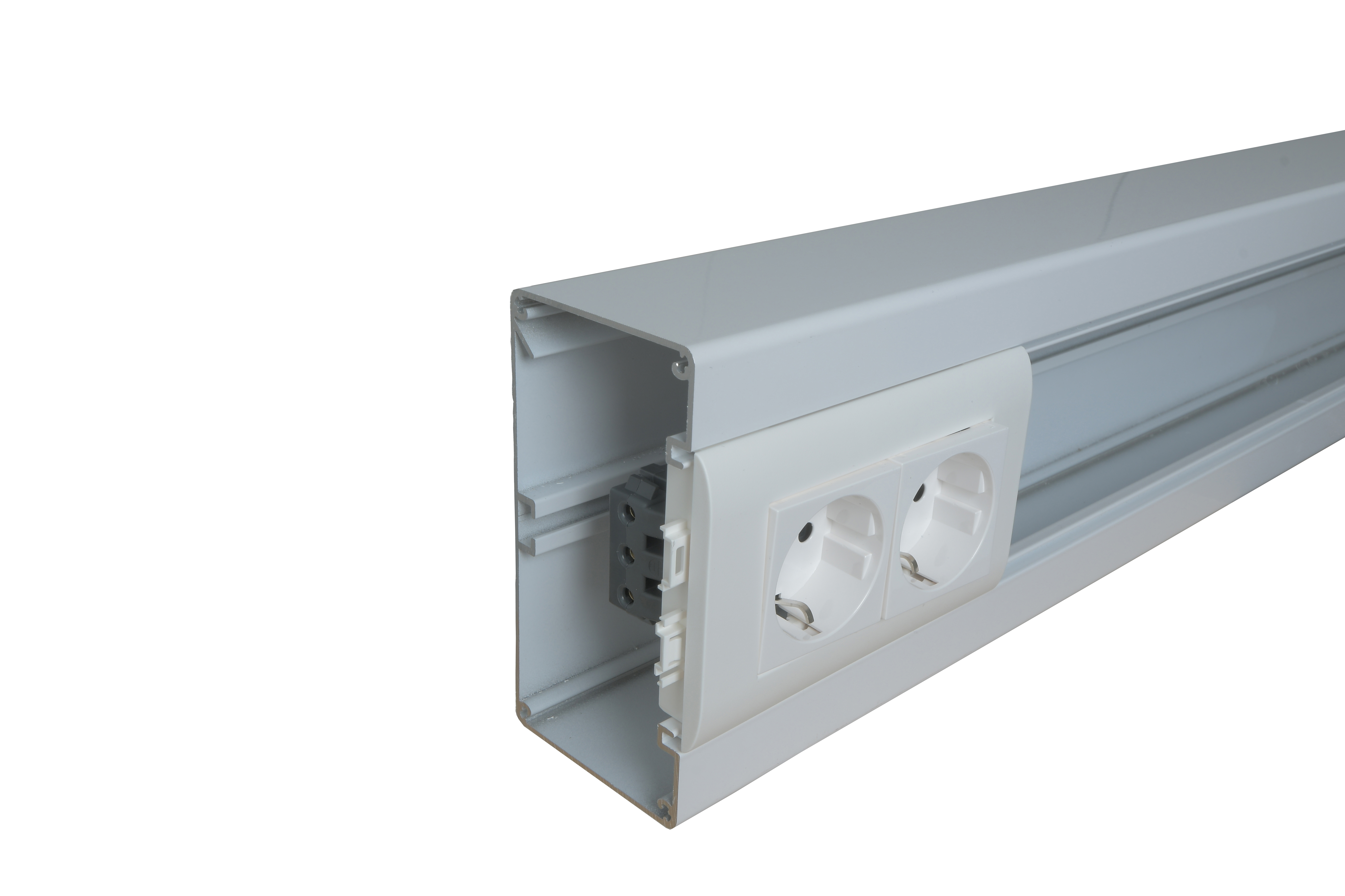 V125 är en diskret aluminiumkanal som passar lika bra som fönsterbänkskanal, nedföringskanal, uttagslist, lab panel eller väggstav.