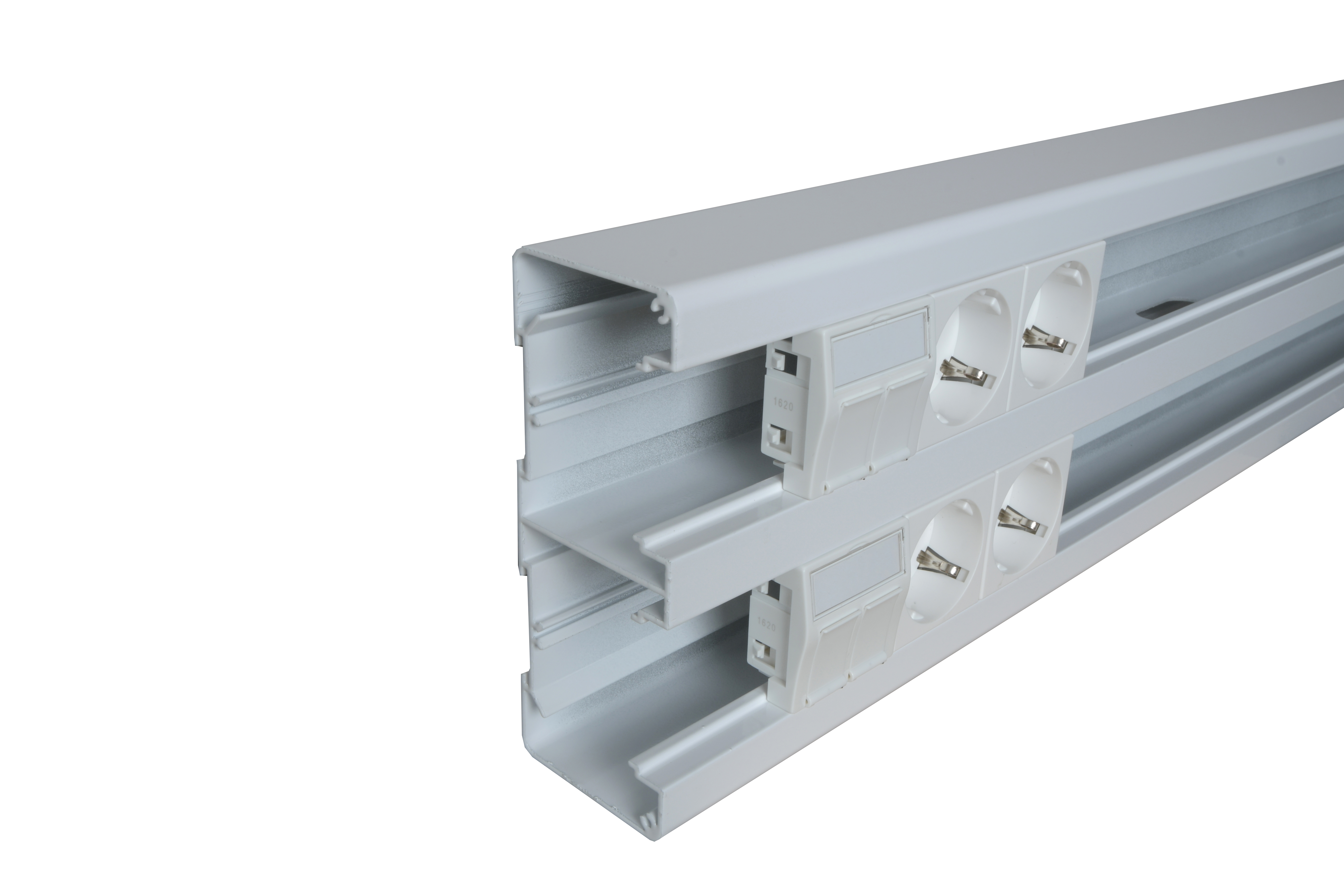 Installationskanal dubbel typ V140 i aluminium för 45mm moduler. 140x140mm L=3m, vit