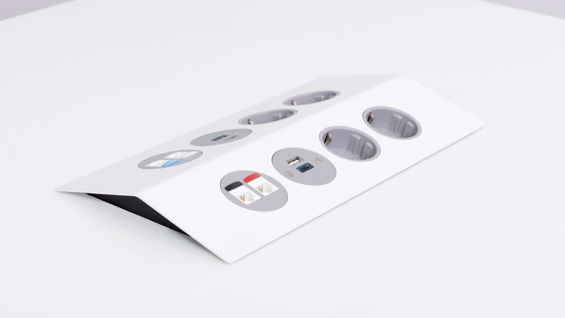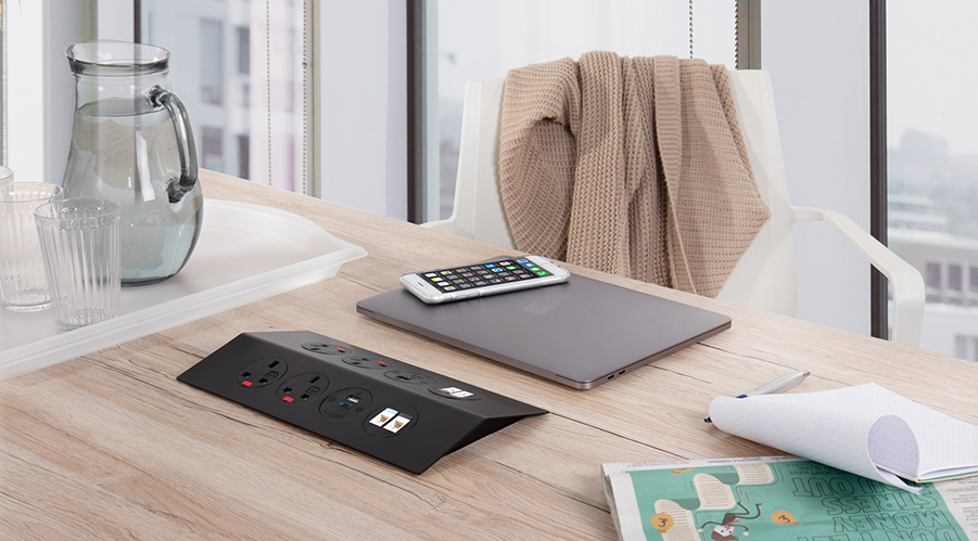 PEAK med sin iögonfallande design "flytande yta", är en elegant ny metod för att ge kraft och dataanslutning i mötesbord.