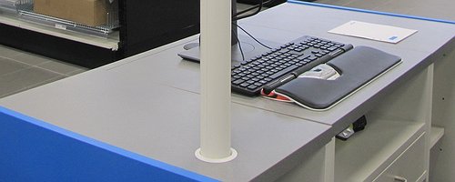En populär modell är vår uttagsstav Singel 65. Den finns som fristående, väggmonterad eller inspänd och rymmer uttag för minst två arbetsplatser.