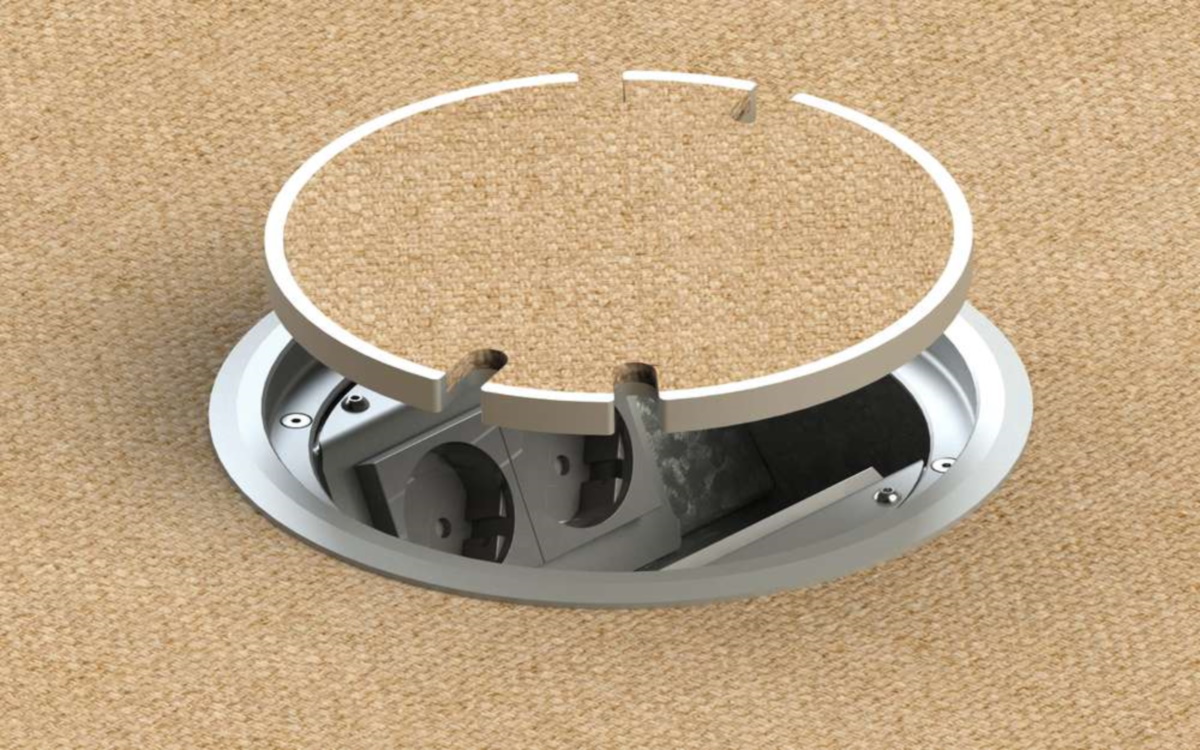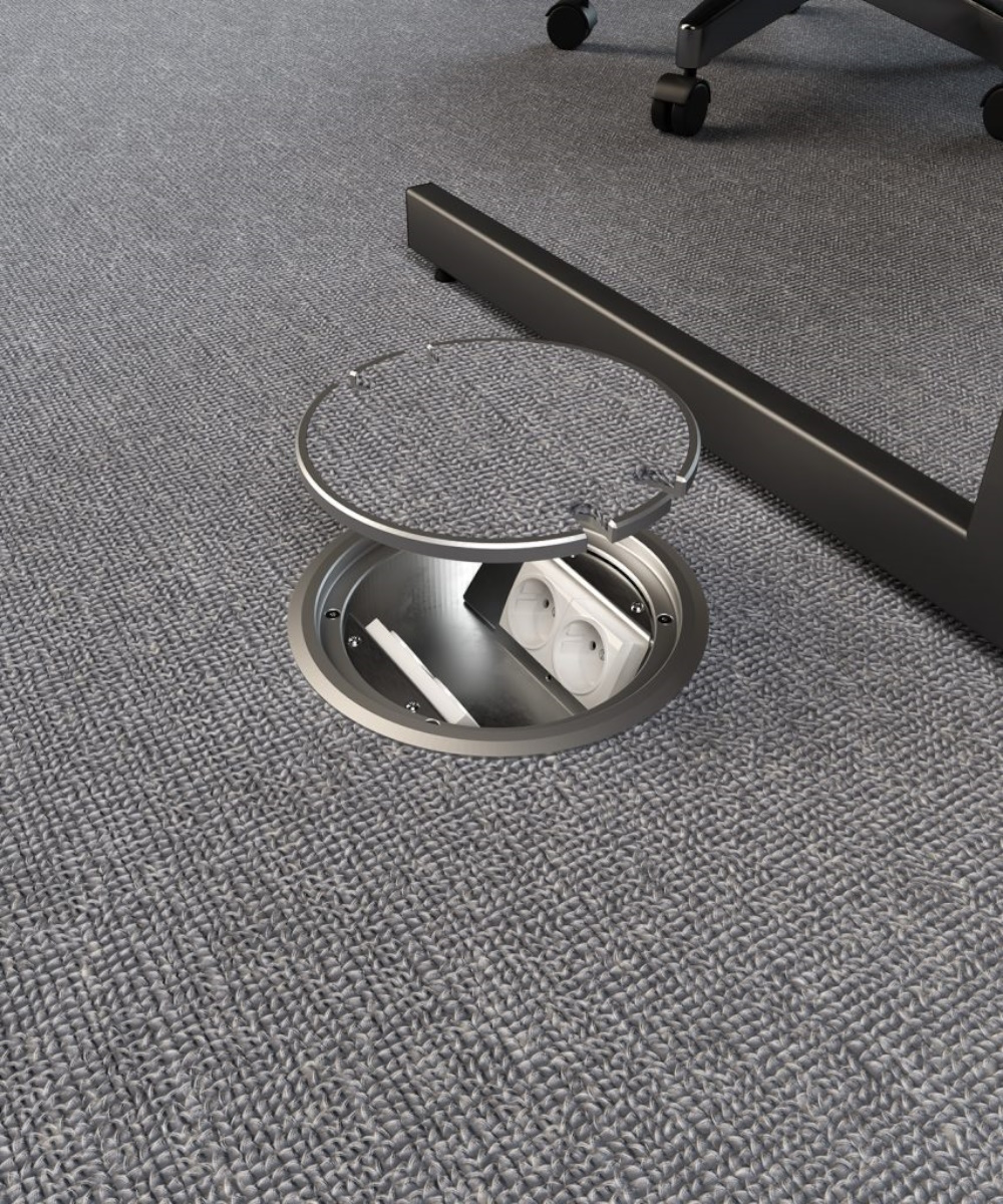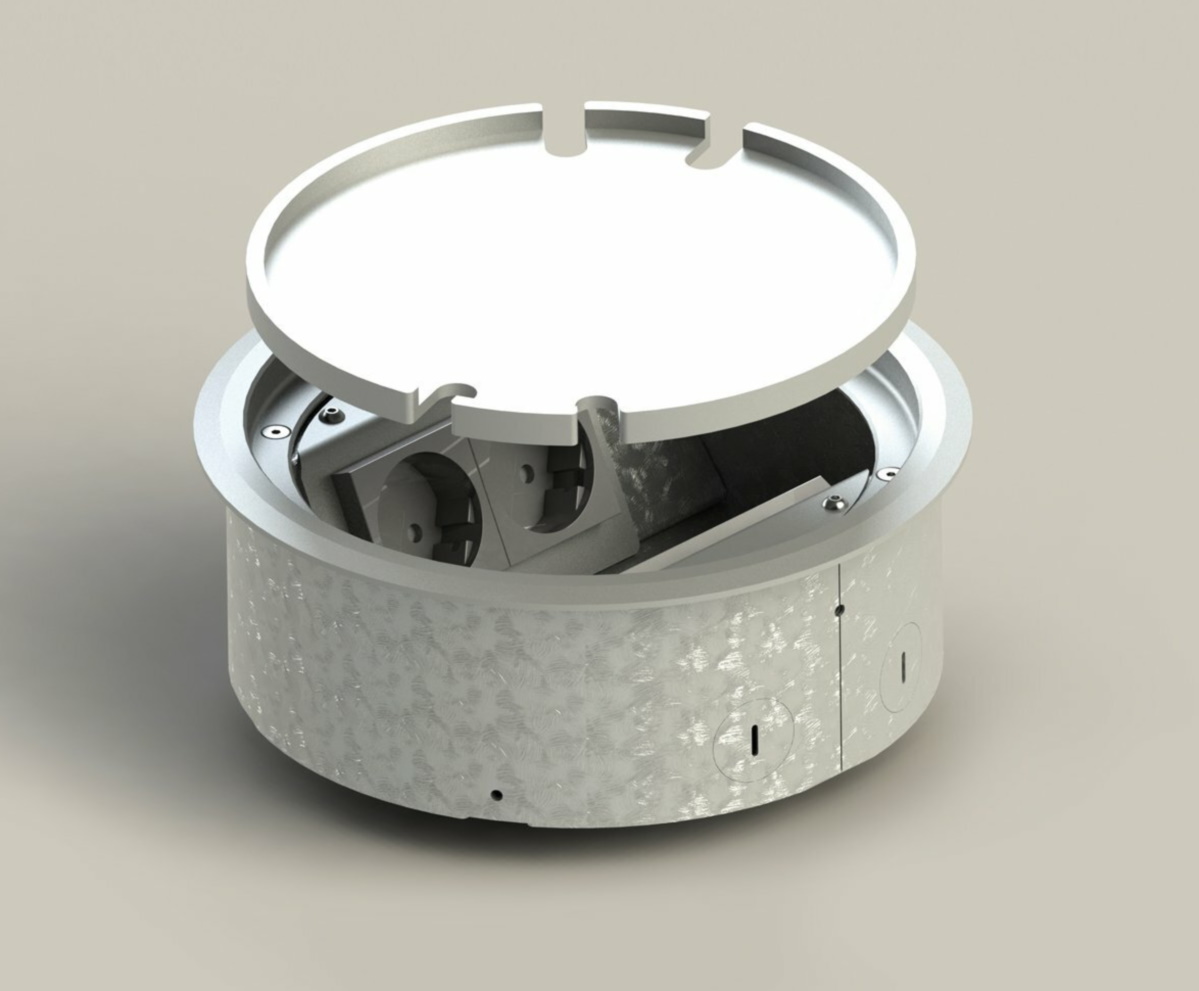 Golvbox 9904A är tillverkad i alu, elox lock och krage. Vändbart lock med plats för 6mm golvmaterial. Plats för 4 uttag